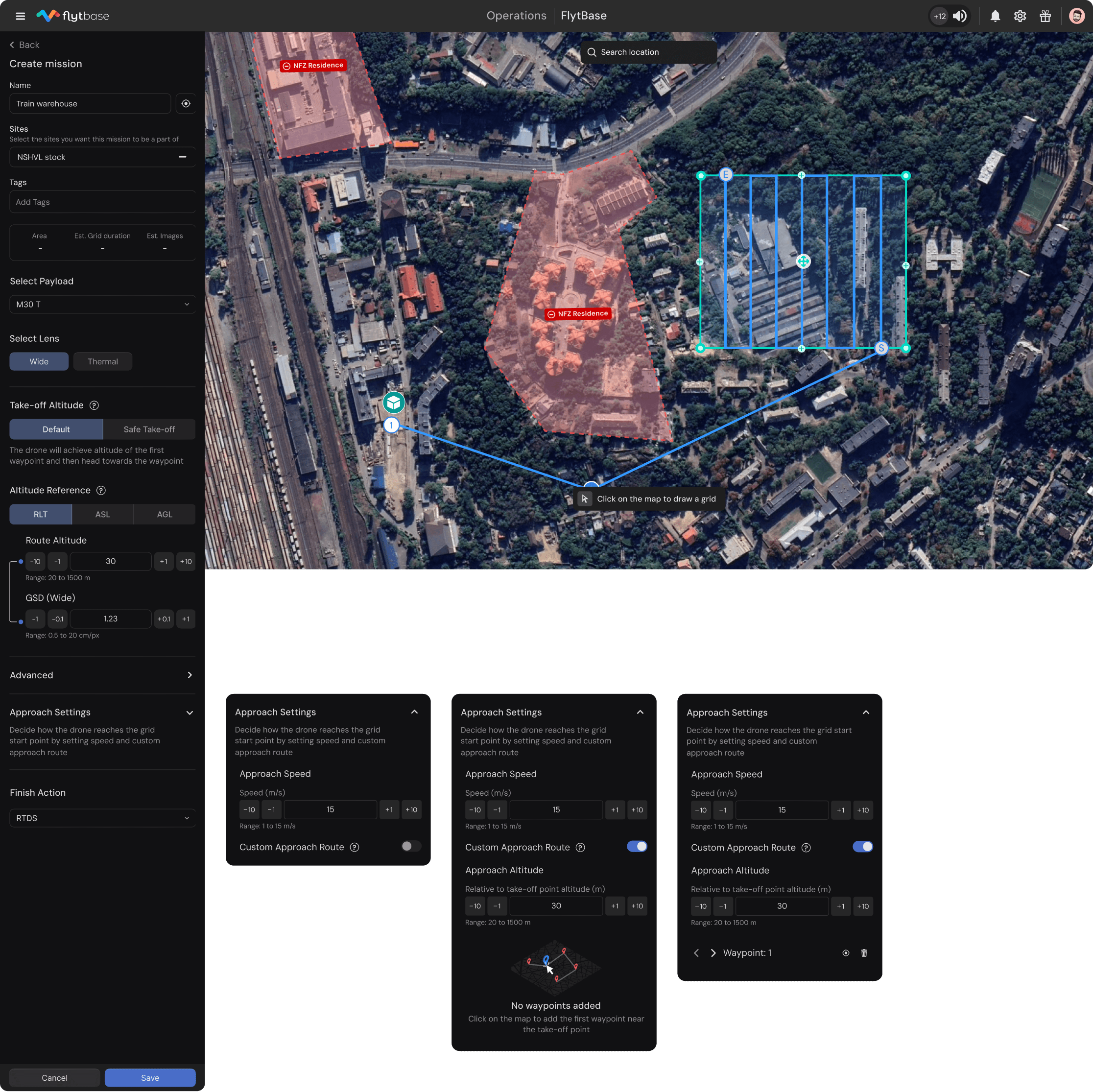 Custom Approach Routes: We developed a custom approach route feature that empowers users to define the drone’s entry path into the grid area. This control enhances flight precision and overall mission safety.